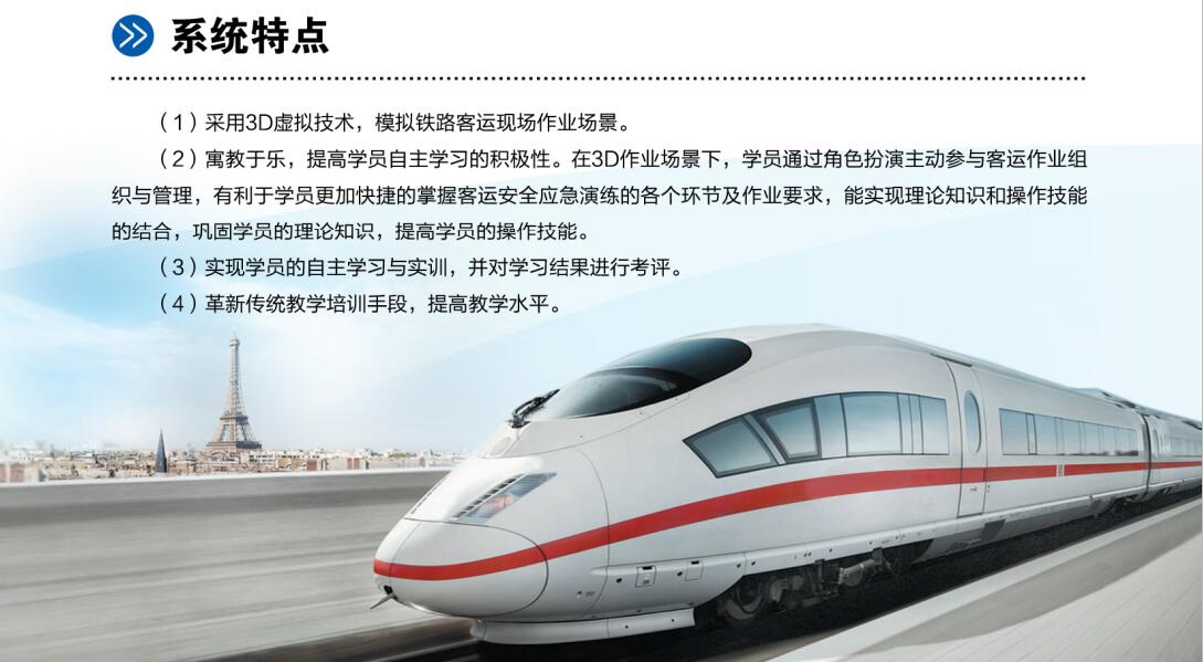 3D客運安全應急仿真演練考評系統利用3D技術建立仿真模擬戰、車環境,設計演練場間并建立考評知識點,可實現無限次安全應急仿真模擬演練并考核應急處置關鍵想點,能很好地解決缺乏演練場景和常態化演練的問題,切實提高客運職工安全應急處置技能。